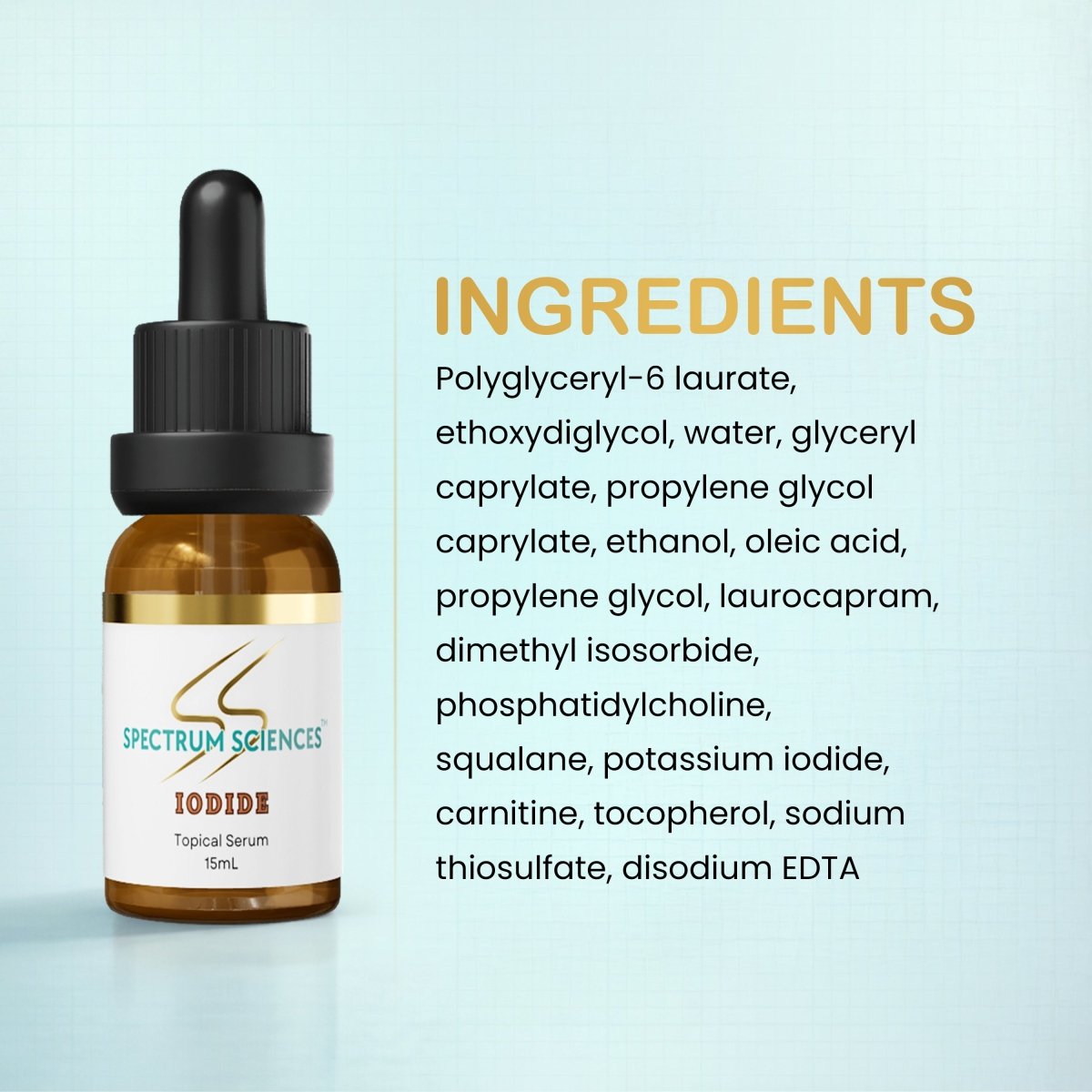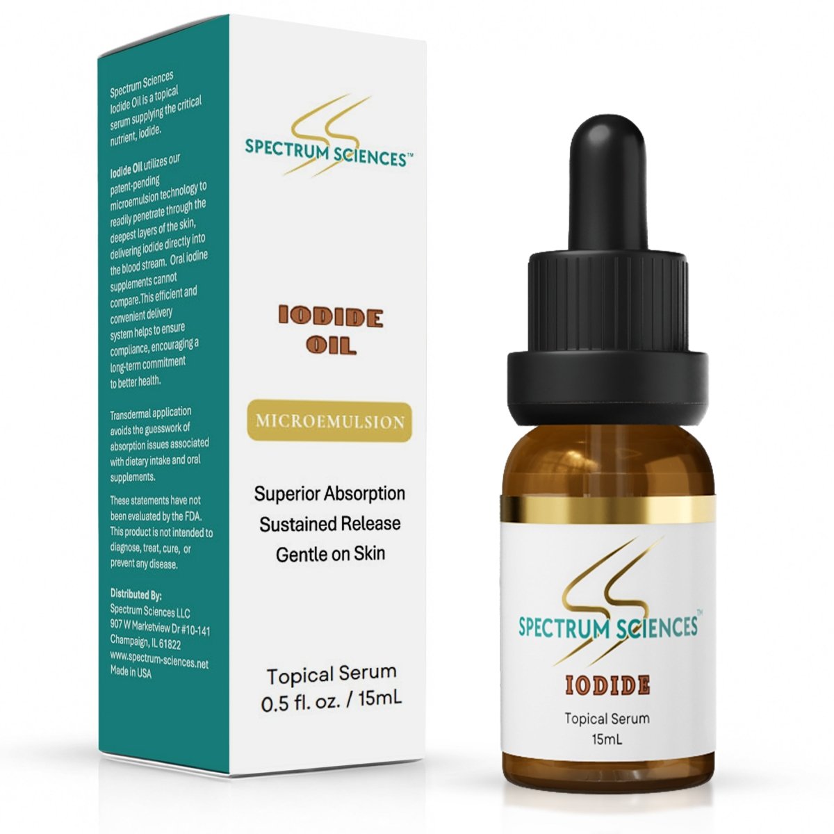 Spectrum Sciences Iodide Oil is a topical serum supplying the critical nutrient, iodide. This element is a component of thyroid hormone and also plays antioxidant and immunological roles in the body.